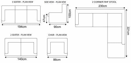 Dillon Fabric 2 Corner 1 + Stool- Smoke/Grey