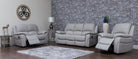 The Serena Half Leather model is available as 3 Seater, 2 Seater and chair, all reclining. It comes in two colour options, Sky Blue and Pearl Grey.